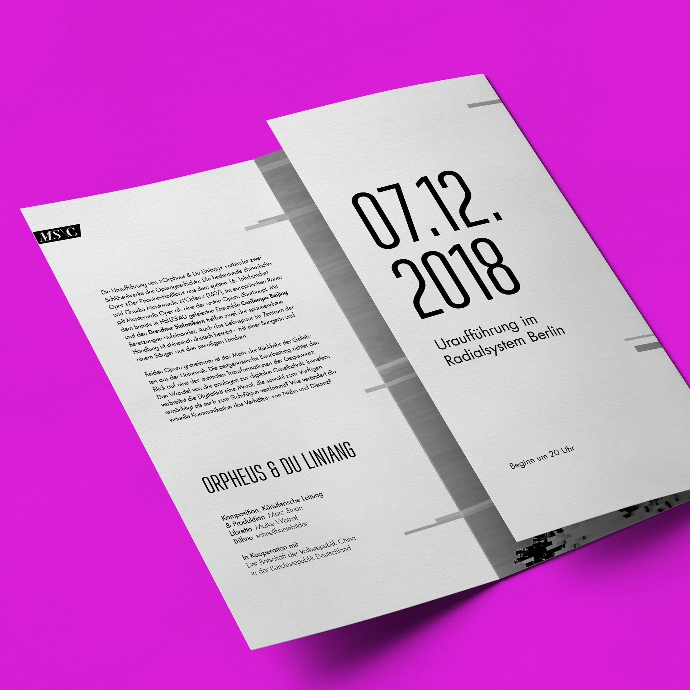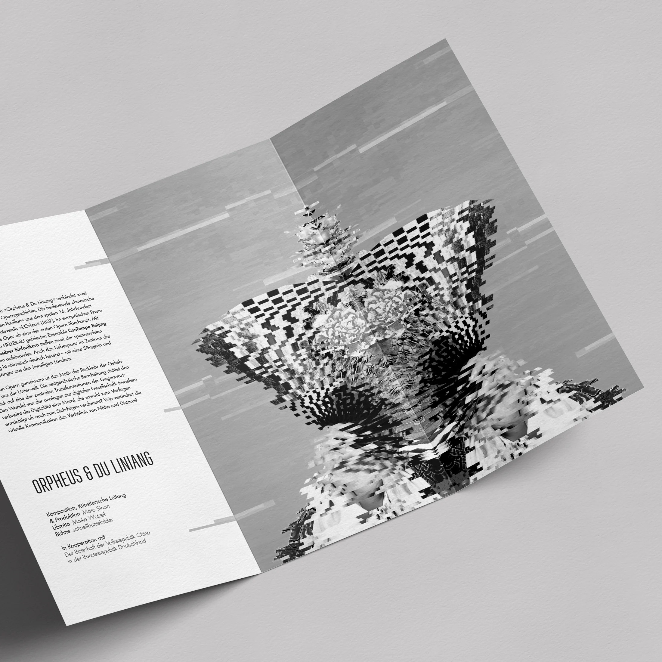 Der „Pfingstrosenpavillon“ gilt als chinesisches Pendant zur Oper „Orpheus und Eurydike“. Eine audiovisuelle Performance verbindet beide Werke durch das Zusammenspiel zeitgenössischer Musik mit traditionellen griechischen und chinesischen Klängen. Für die Beantragung von Fördergeldern wurde eine Mappe erstellt, deren Deckblätter die beiden Protagonistinnen in den Fokus setzen.