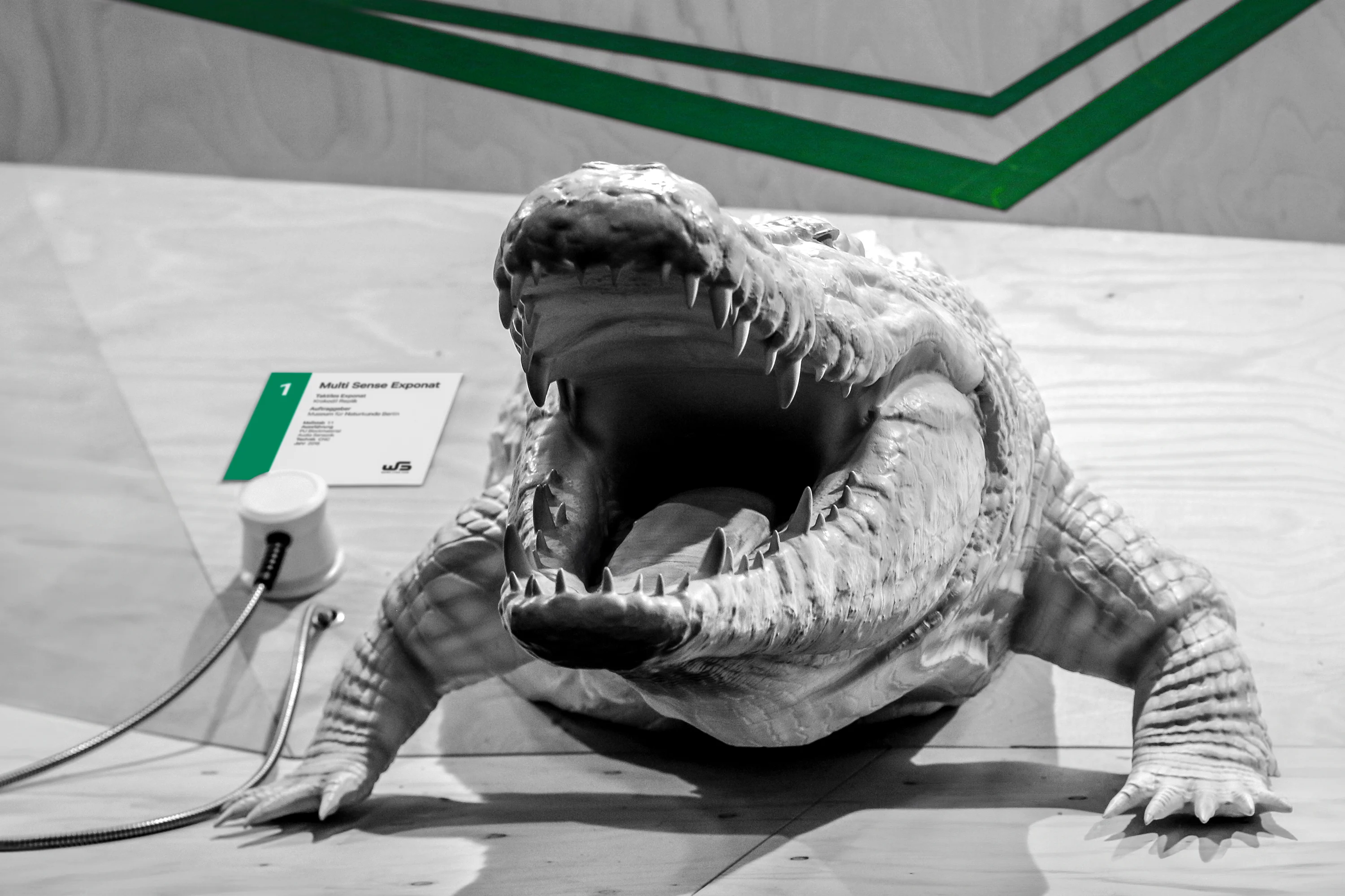 Die „Exponatec“ in Köln ist eine Museumsmesse mit einem Fokus auf zukunftsorientierte Trends und Technologien. Der Messestand vereint Applikationen von „Interactive Scape“ mit taktilen Exponaten von „Werk5“. Das haptische Tape-Art Leitsystem setzt einen Kontrast zu den technischen Produkten. Es wird eine reale Ausstellung simuliert, welche selbsterklärend ist und Besuchende dazu einlädt, die Produkte eigenständig zu erkunden.