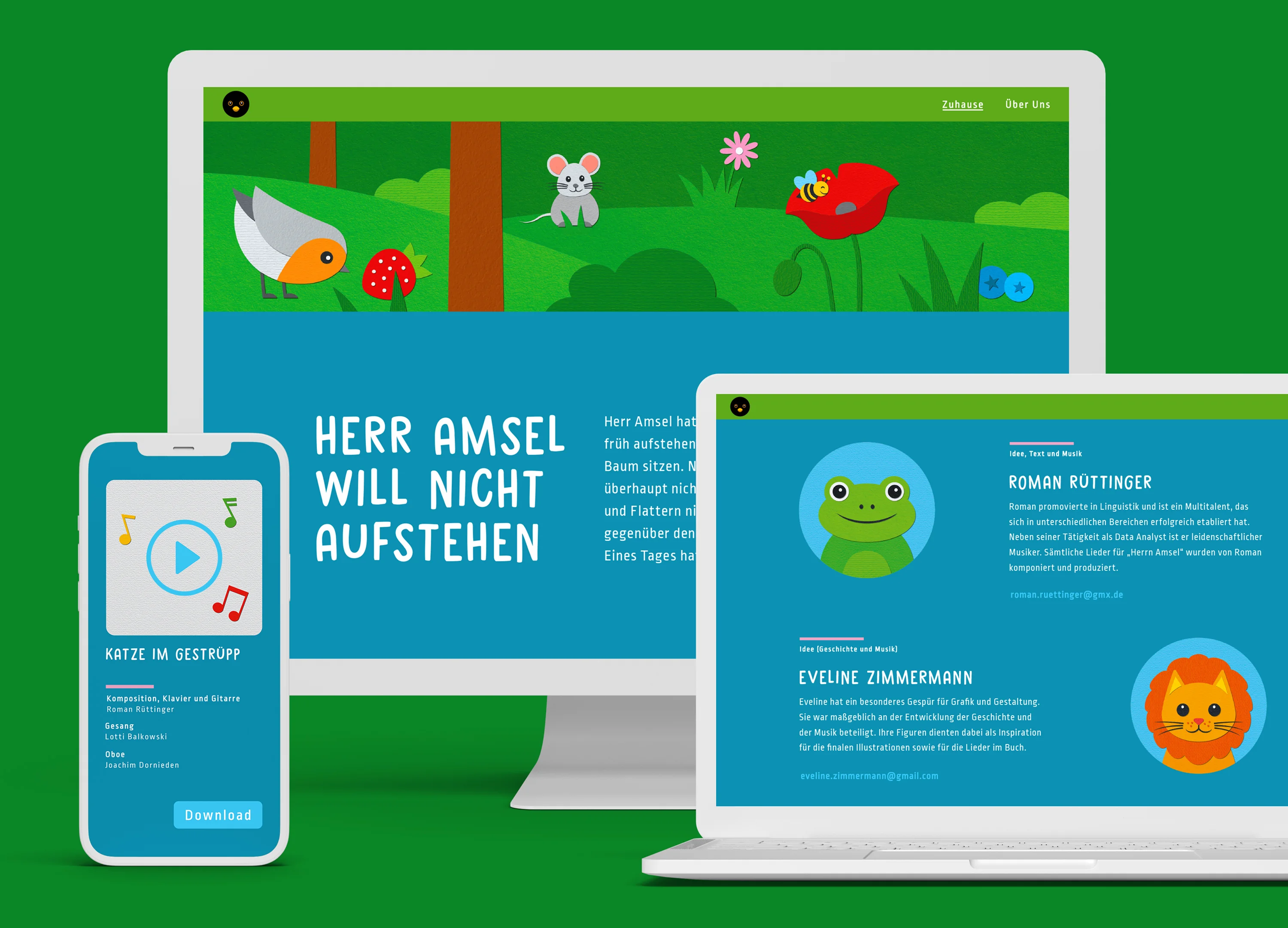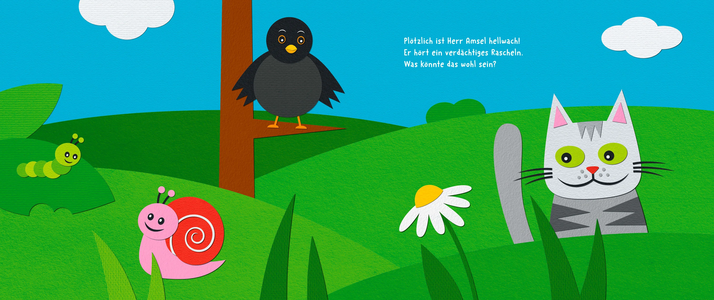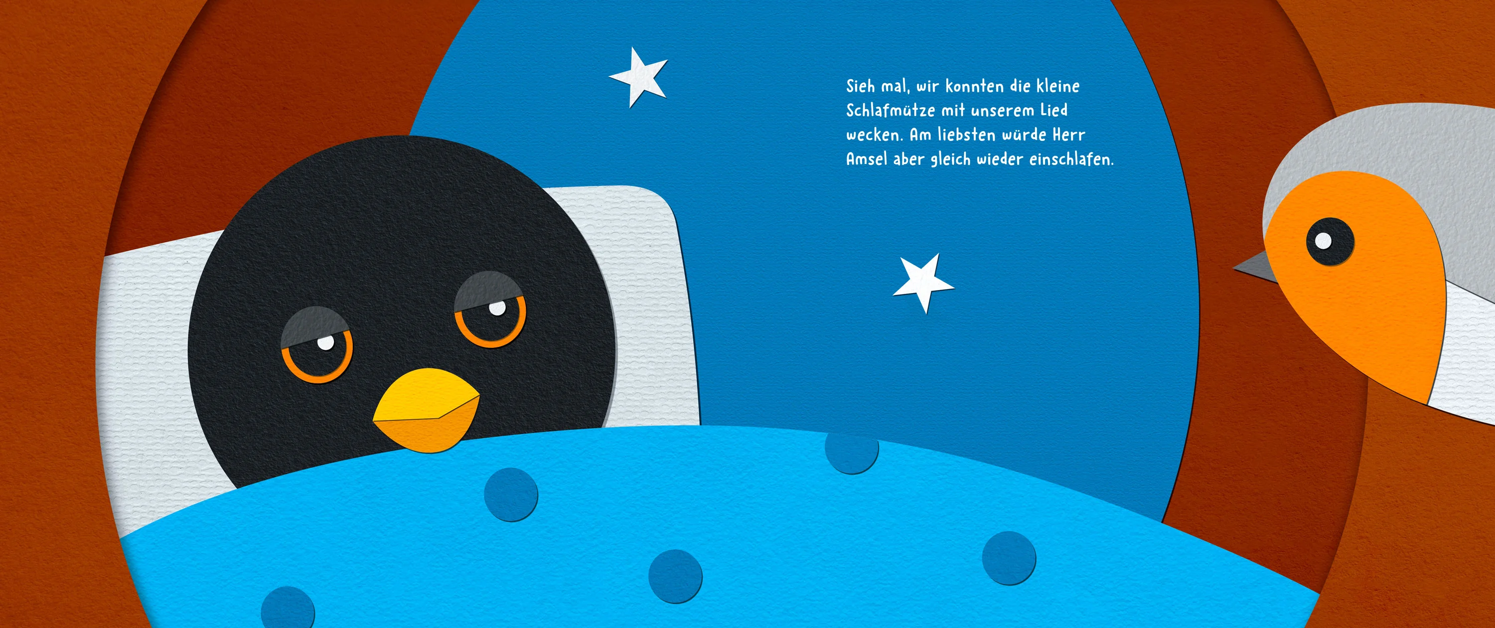 „Herr Amsel will nicht aufstehen“ ist ein Kinderbuch, wo es um einen kleinen Vogel geht, der nicht dazu passt und der auf der Suche nach Akzeptanz und Zugehörigkeit ist. Einfache Formen, welche aus Papier nachgebastelt werden können, bilden die Grundlage des Illustrationsstils.